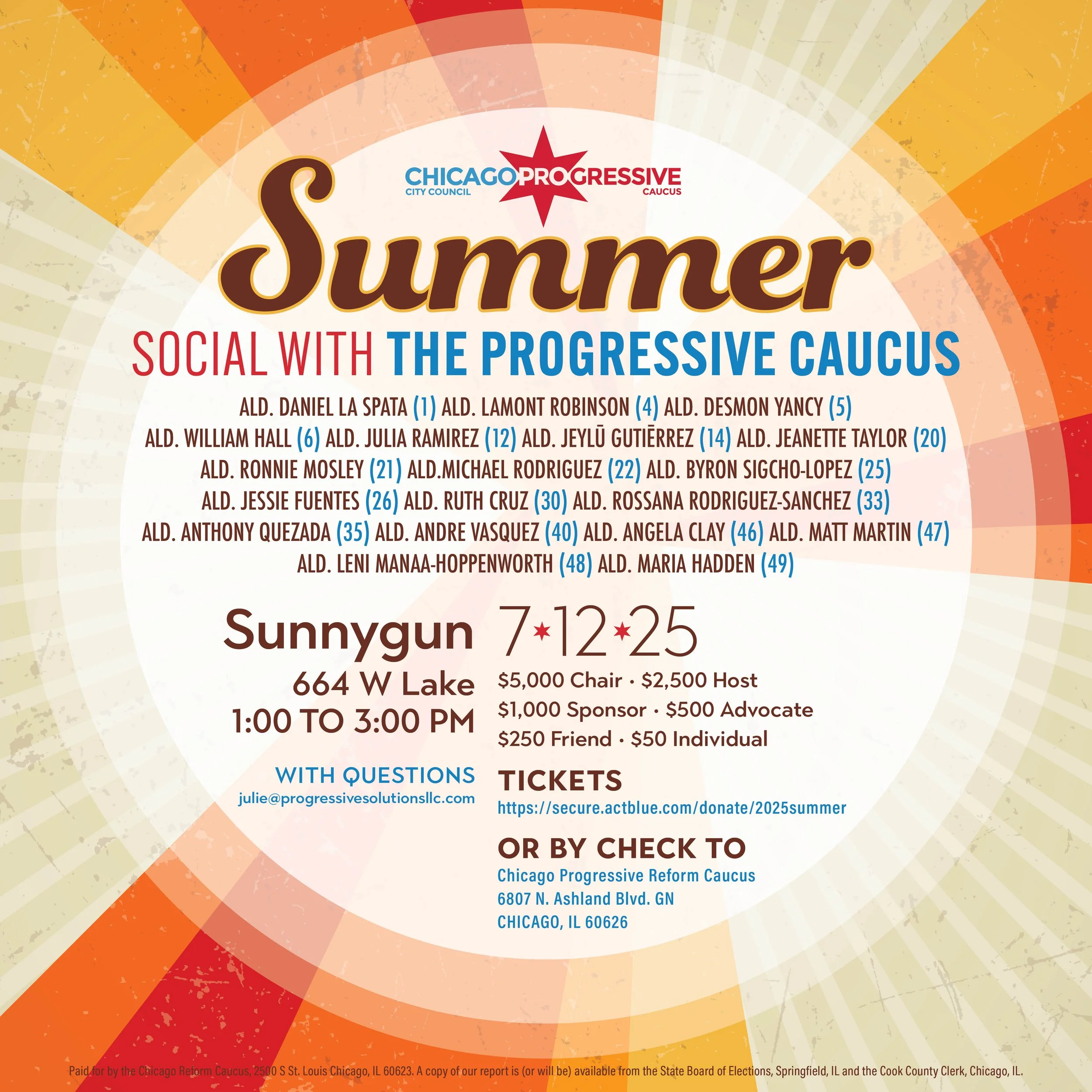 Join Leni and the rest of the Chicago Progressive Caucus for a Summer Afternoon Social! ☀️